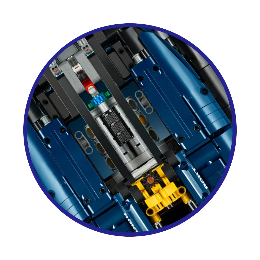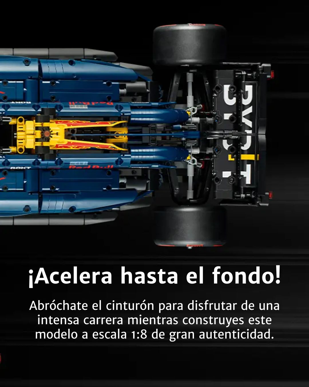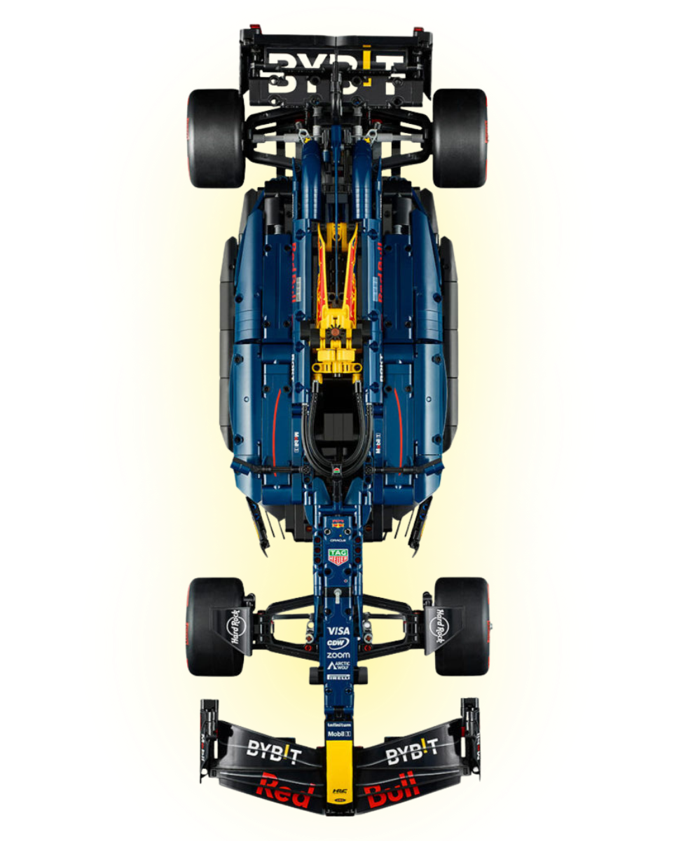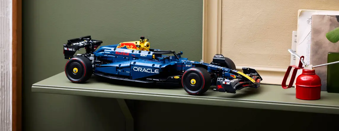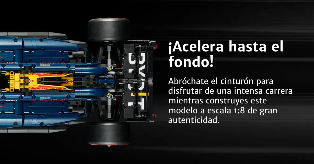 Decorado con los colores distintivos del equipo campeón del mundo Oracle Red Bull Racing, el RB20 está puesto a punto para ofrecer una experiencia de construcción.